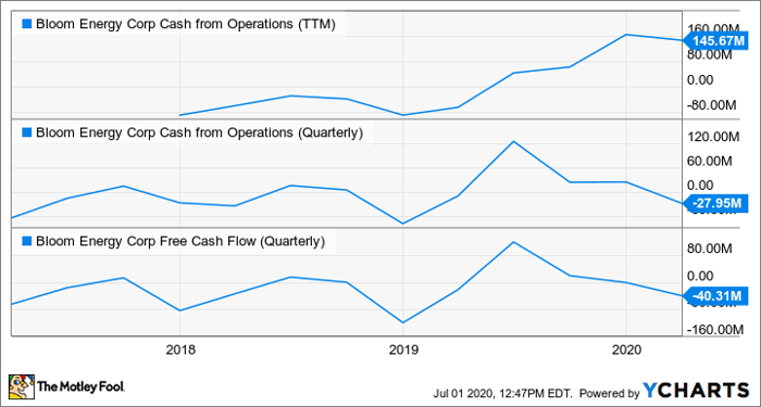 On a quarterly basis bloom energy lost 22 4 million in q1 2018 compared to 65 4 million in q1 2017.
